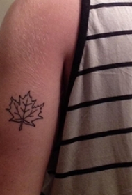 男生手臂上黑色简单线条植物素材枫叶纹身图片