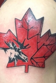 枫叶纹身图 男生大臂上彩色的枫叶纹身图片