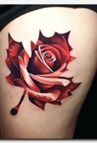 女生大腿上彩绘水彩素描创意文艺枫叶玫瑰纹身图片