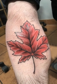 枫叶纹身图案 男生小腿上枫叶纹身图案