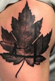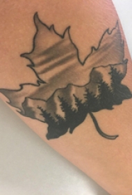 枫叶纹身图 男生手臂上黑色的枫叶纹身图片