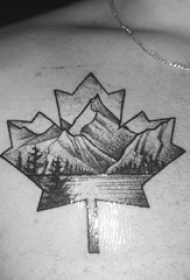 枫叶纹身图 男生胸部黑色的枫叶纹身图片