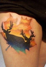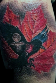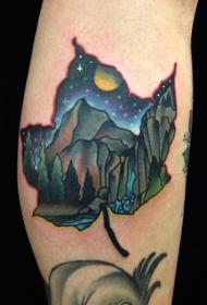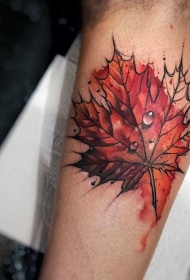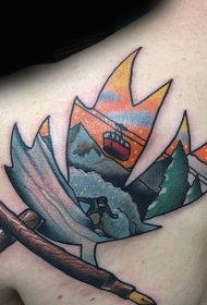 肩部新的学校风彩色枫叶与滑雪板纹身