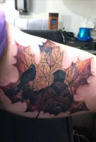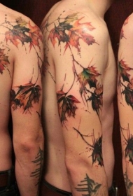 手臂和背部超级写实的枫叶彩色纹身图案