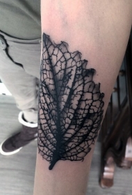 非常精致的黑白叶子手臂纹身图案