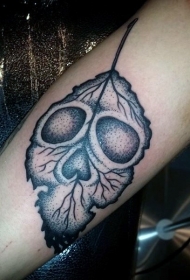 手臂有趣的黑色叶子轮廓骷髅纹身图案