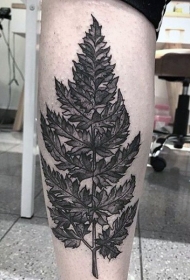 小腿超级逼真的蕨类树叶纹身图案
