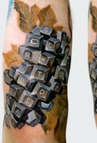 手绘彩色键盘键与叶子手臂纹身图案
