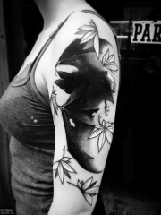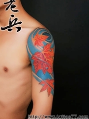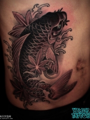 包小腿传统鲤鱼浪花枫叶纹身图案帅气十足