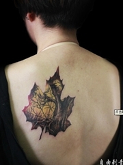 遮盖满背日式浪花枫叶大鲤鱼纹身图案