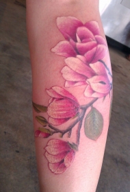 腿部逼真可爱的粉红花朵纹身图案