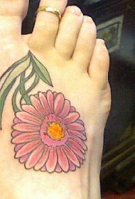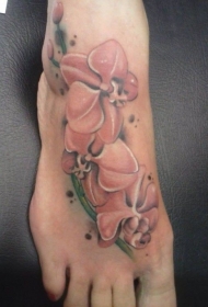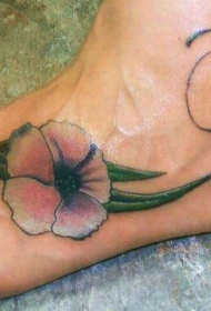 脚背彩色芙蓉花纹身图案
