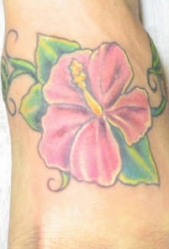 女性脚背彩色木槿花纹身图案