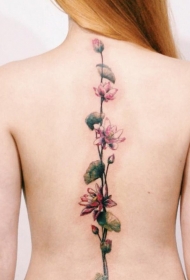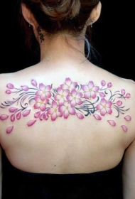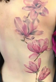 非常漂亮的粉红色花朵背部纹身图案