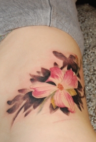 腰部粉红色的山茱萸花纹身图案