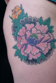 大腿粉红色的花朵纹身图案