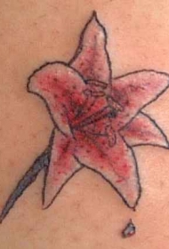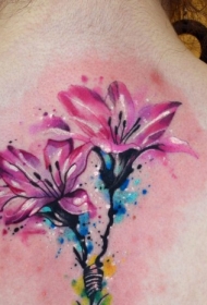 背部精致的粉红色百合花纹身图案