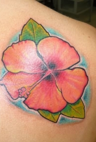 背部可爱的粉红色夏威夷花纹身图案