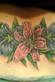 脚背漂亮的蓝色和粉红色百合花纹身图案