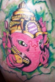肩部漂亮的粉红色花朵与树枝纹身图案