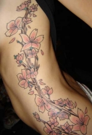 腰部奔跑的猎豹与粉红色斑点纹身图案