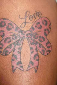 粉红色豹纹蝴蝶结字母大腿纹身图案