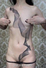 性感美女腹部的蝴蝶藤蔓纹身图案