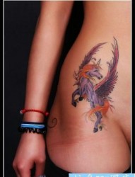 美女腹部彩色独角兽翅膀纹身图片纹身作品