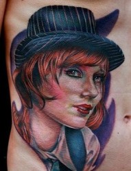 腹部彩色欧美美女肖像纹身图片纹身作品