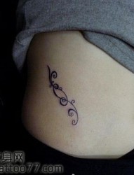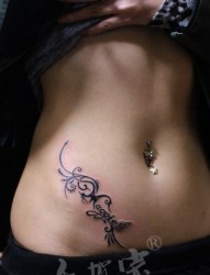 腹部纹身图片:美女腹部图腾鱼骨纹身图片纹身作品