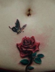 腹部纹身图片:美女腹部图腾爱心五角星纹身图片纹身作品