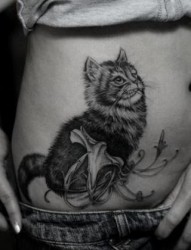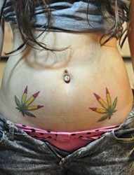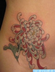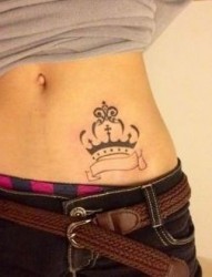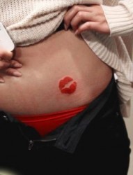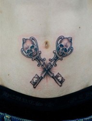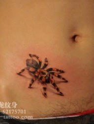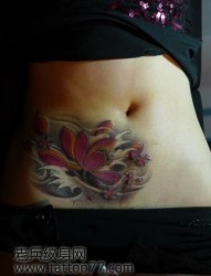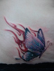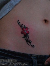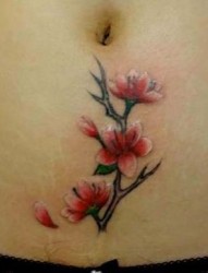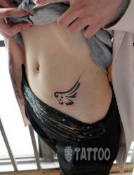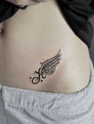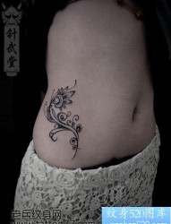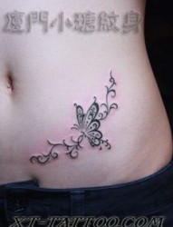 女孩子腹部精美好看的图腾蝴蝶藤蔓纹身图片