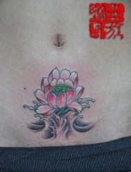 女人腹部漂亮的彩色玫瑰花纹身图片