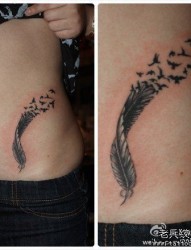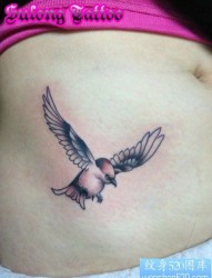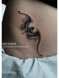 女人腹部沙漏翅膀玫瑰花纹身图片