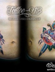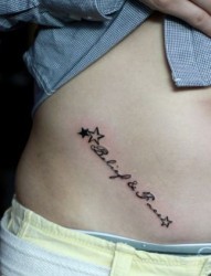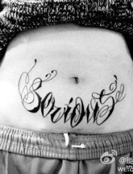 女人腹部潮流漂亮的花体英文字母纹身图片