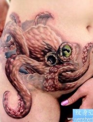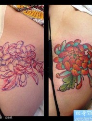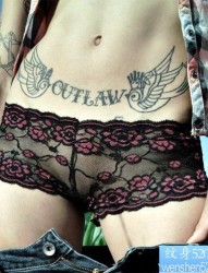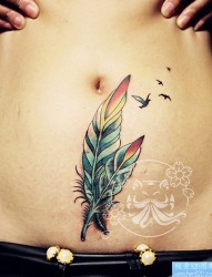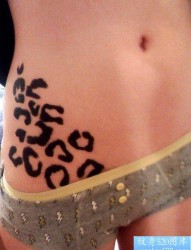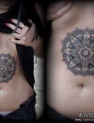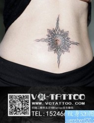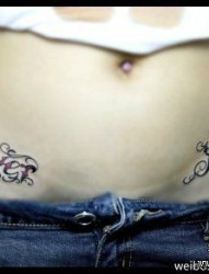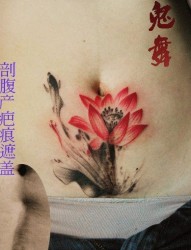 美女腹部疤痕遮盖水墨莲花纹身图片