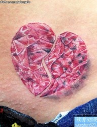 女人腹部精美的碎裂的爱心钻石纹身图片