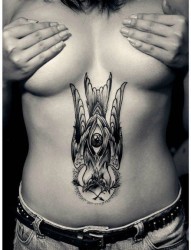 女人腹部经典时尚的唐狮与牡丹纹身图片