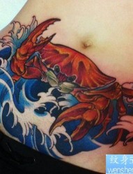 女人腹部潮流很酷的一幅螃蟹纹身图片
