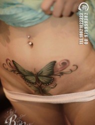 美女腹部唯美时尚的蝴蝶纹身图片