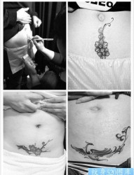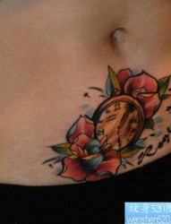 纹身520图库推荐一幅女人腹部彩色花纹身图片
