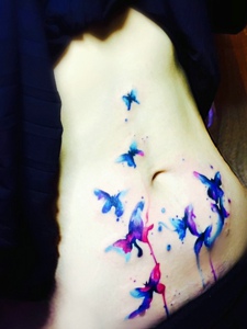遮盖辣妈腹部边上的彩色花朵纹身图案