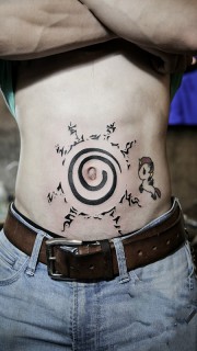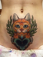 胸骨至下腹部上多种风格漂亮的纹身图案