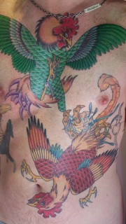男性胸前斗鸡纹身图案
