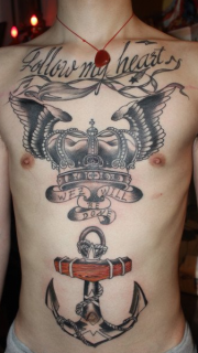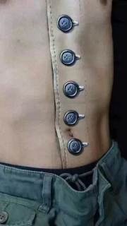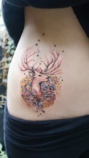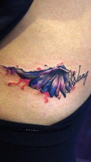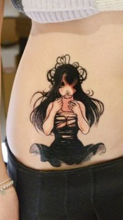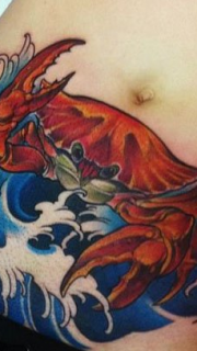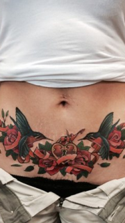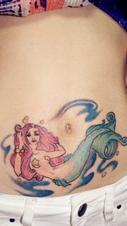 美女腹部漂亮的彩色鲤鱼纹身图案
