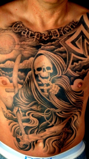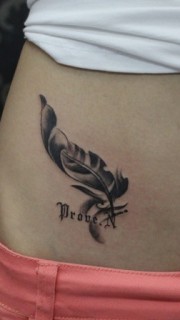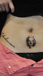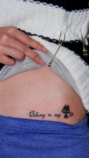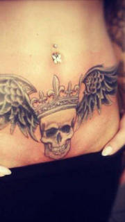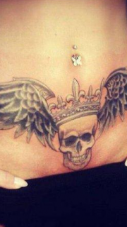 美女腹部时尚很酷的骷髅翅膀纹身图案