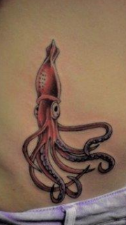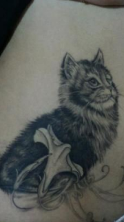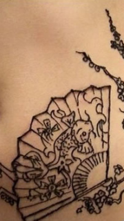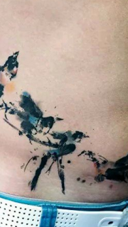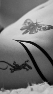 女生腹部飞蛾腿部壁虎性感黑白纹身