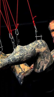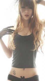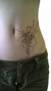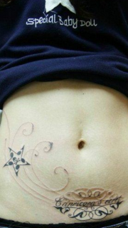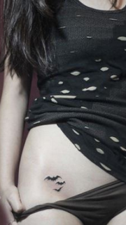 女孩子腹部潮流的图腾小蝙蝠纹身图片