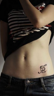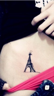 女生腹部巴黎埃菲尔铁塔唯美纹身