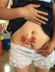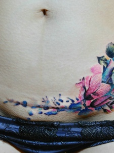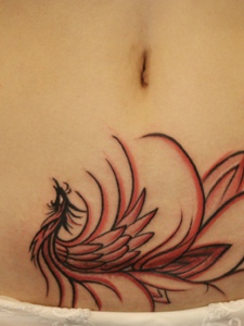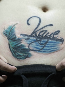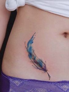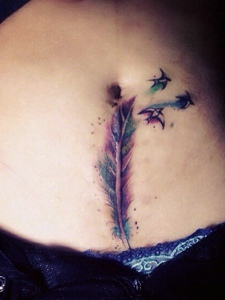 遮盖剖腹产疤痕的羽毛与小燕子纹身图片